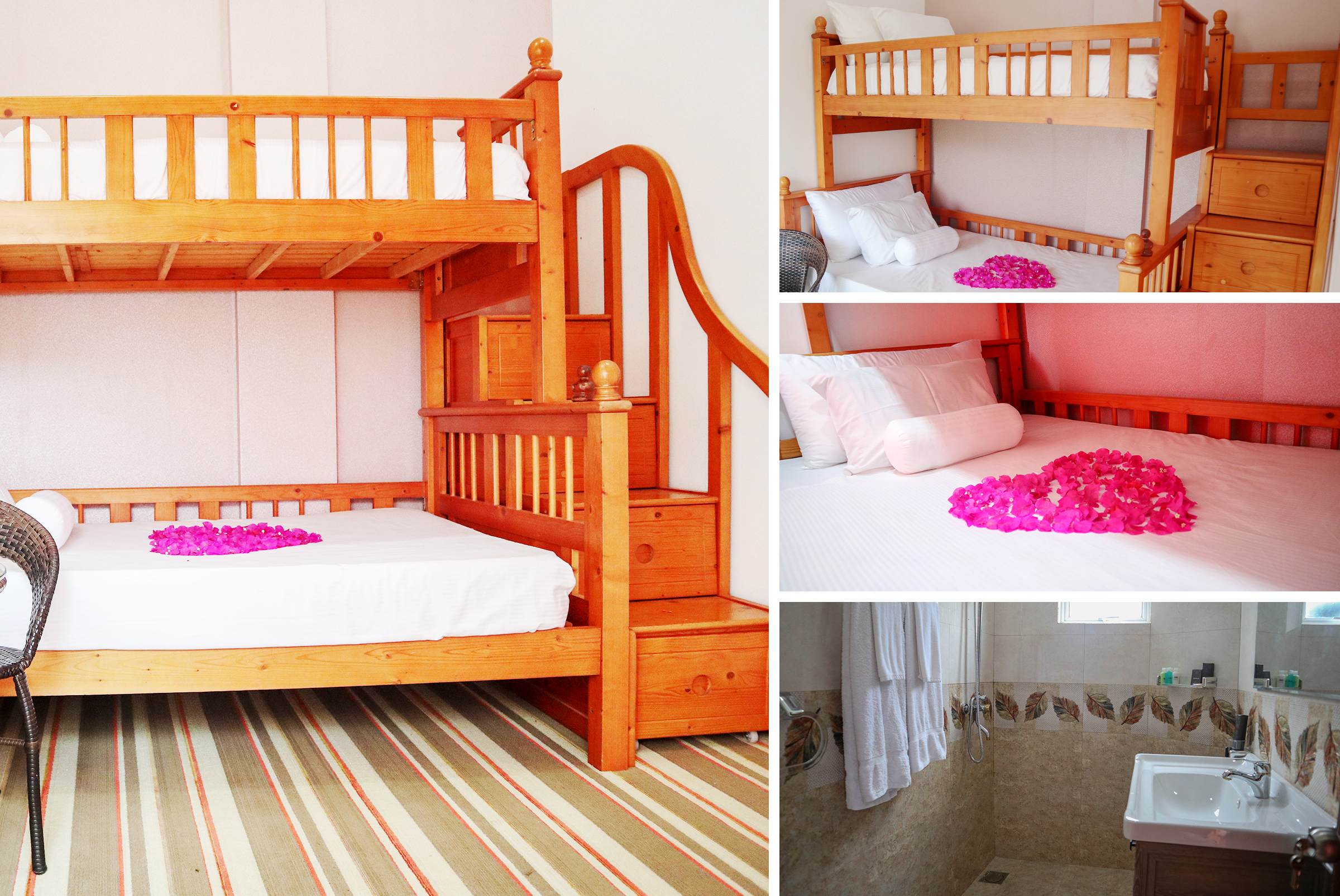 Our Superior Deluxe Twin room consists of a playful design aesthetic with a wooden set of bunk beds.